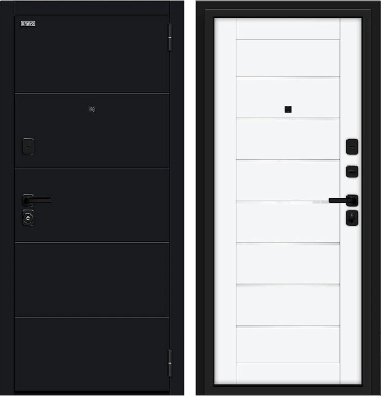 Надежная входная Дверь Браво Прайм/SBlack-Black Shell/White Silk премиум класса по цене 40 251 руб. Большая толщина стали защитит от проникновения в ваш дом, квартиру или коттедж. Используется очень качественная фурнитура: замки, цилиндры, ручки, защелки. Покрытие и отделка двери изготовлено под внимательным контролем производителя. Дверь имеет долгий срок службы и гарантию.